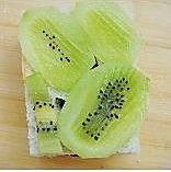在吐司片上放上猕猴桃片,最后再盖上1片吐司片。