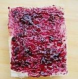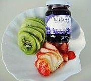 在吐司片上涂上蓝莓酱,再盖上吐司片。