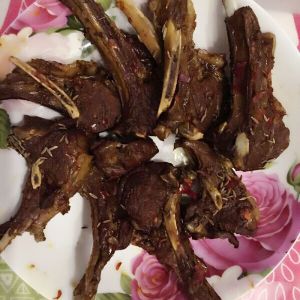 高压锅下气后,将羊排刷上步骤四。放入烤箱中层,上下火二十分钟。羊排用锡纸包裹。