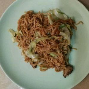 锅里放油依次放入辣椒,香菇,包包菜,面炒。