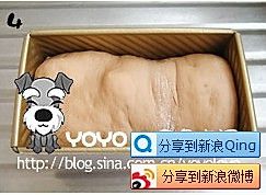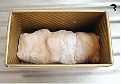 延一端卷起成长条形,放入土司模进行第2次发酵