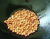 锅内冷油,放入花生仁保持小火炸,炸时可把锅侧起让油浸过花生。