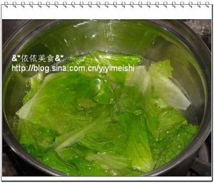 开水里放油、盐少量,放进生菜烫2分钟至颜色变绿就好了,生菜最容易熟: