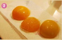 黄桃果泥碗中,加入白砂糖、樱桃干、鸡蛋搅拌均匀。