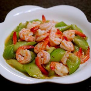 丝瓜翻炒一会儿变色变软即可加入腌制好的虾仁翻炒,忘拍加入虾仁的图了