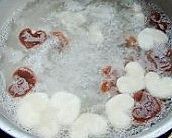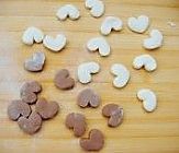 将两种面团分别揉成圆形,擀成片,用心形模具刻出心形的汤圆来。