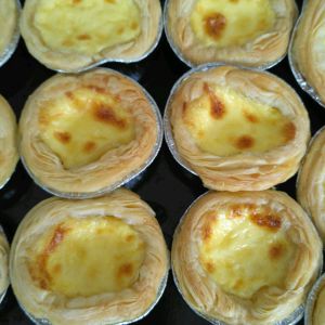 时间快到了,看到葡式蛋挞的表面已经结好,并且有焦了的表皮,很好。
