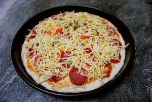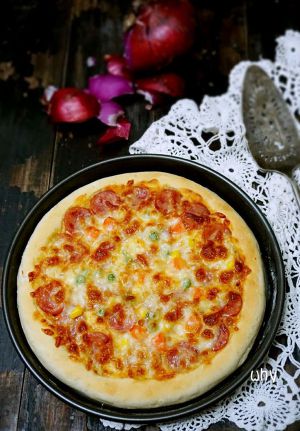 披萨的饼底厚度可以自行掌握,如果喜欢饼底厚一些,可以用的面团稍微多一些!