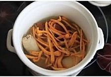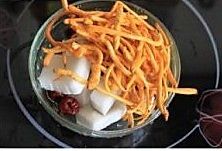 把洗好的虫草花和洗干净切小块的椰子肉、红枣装好备用