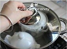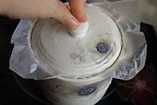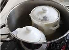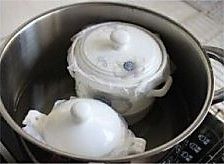 注入达到炖盅一半位置左右的冷水(小的炖盅太矮,我用一个小竹蒸笼撑起)
