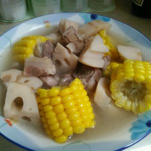 20分钟左右后,关火,注意等高压锅排气后加入莲藕,玉米,再炖5分钟左右,排气出锅。