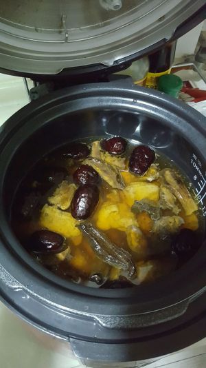 牛肝菌泡发洗净,搁在高压锅底,红枣板栗冲洗一下也放在高压锅中。