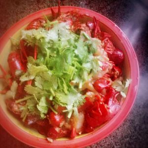 然后我们放入多半瓶勇闯天涯进去直至没过小龙虾为止 停止。