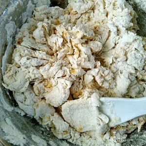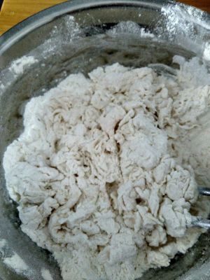 南瓜切碎或切片蒸熟捣烂,放温待用,大概35度的时候加入到到面粉中
