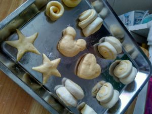 有多的面团可以用模具压出图案,模具事先抹点油,防止粘住拿不出