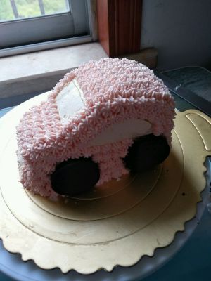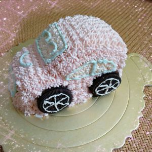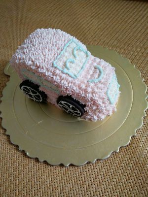 奥利奥做车轮,车前和别窗我是用牙签细细的画出印子,裱奶油的时候把它空出来