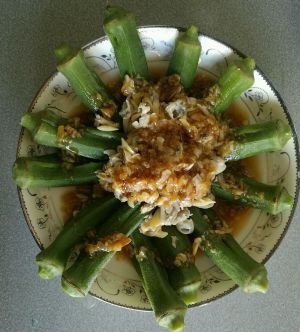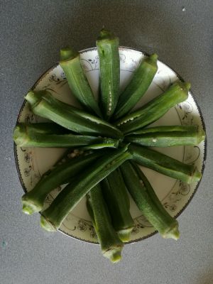 秋葵洗净改刀十字,摆盘上锅蒸五分钟