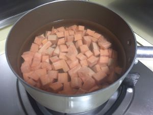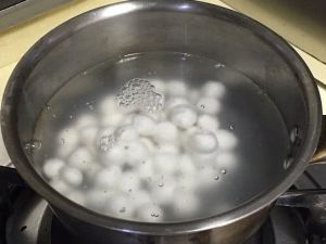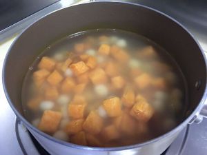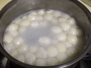另取一奶锅,倒入适量清水,煮开,倒入小丸子。