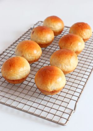 面团发酵至两倍大时,表面刷蛋液,烤箱预热,180度25分钟。