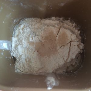 所有材料放入面包机桶内,启动揉面程序,揉至完全扩展阶段即可。