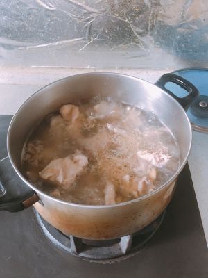 水开了,把鸡肉放进去,把血沫子煮出来就可以,不要煮太久,这样会煲不出来油。