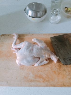 先把鸡剁开。