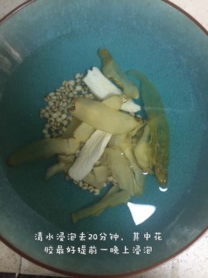 所有汤料浸泡20分钟,洗干净备用。花胶最好提前一个晚上浸泡。