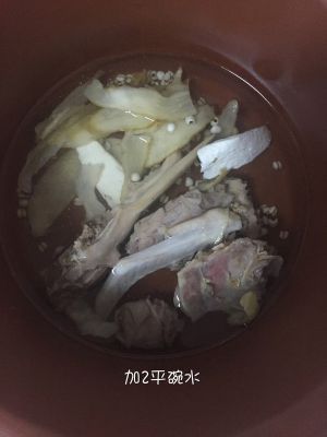 将所有材料放入煲中,加2平碗水(一个人的份量喝),调开关中档4.5小时,也可高火煮开,调成小火2小时。