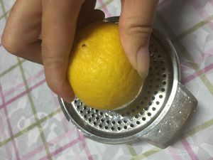 趁这个空档,把柠檬洗干净擦干表皮,切半挤出柠檬汁。