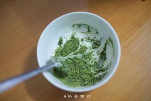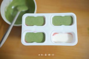 取适量酸奶+抹茶粉拌匀倒入模具就是西瓜皮了,我白色部分太多绿色皮太少了555....