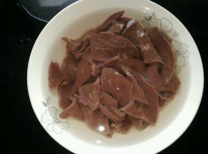 猪肝洗净,用冷水泡上半小时,可以把血沫泡出来
