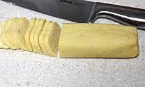 .取出冷冻好的面坯,去掉保鲜膜,用锋利些的到切片