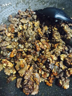 核桃仁倒进去翻炒均匀,就可以出锅啦^o^