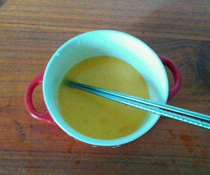 准备好食材,鸡蛋和温开水的比例是1:1.5或者1:2那样,温开水须是烧开晾至不烫手的温度,这是蛋羹细腻的关键,水量可以用蛋壳量