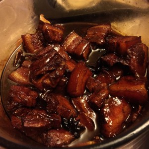 放入一点点的油,爆香姜片和八角,放入五花肉翻炒。(注意放的油越少越好,后面炖煮会出非常多的油)