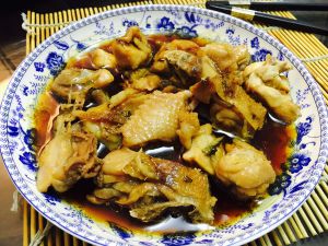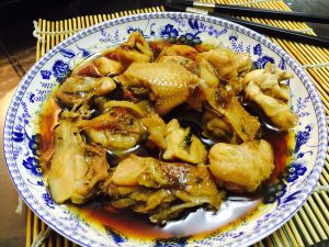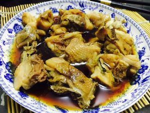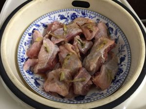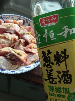 鸡肉斩块洗净后用葱姜料酒、盐、生抽、老抽、腌制半小时