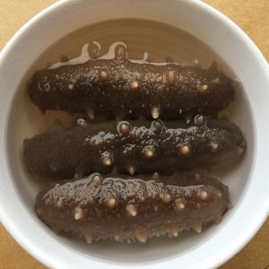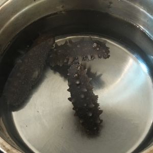 ☆这是海参浸泡第一天的状态,期间记得换水,每天至少2次左右。