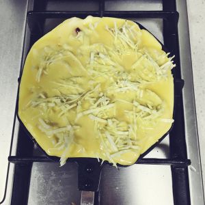 依旧用小火。等蛋液凝固然后把蔬菜和蛋液 用叉子。慢慢堆成堆 ~等啊等。再用尖尖竹签把能反转的慢慢反转过来。然后需要耐心。均匀的热小丸子的每一个面!依旧用小火~等着出锅吧!