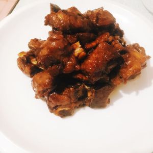 排骨烧之七成熟时加入糖醋汁继续焖煮。