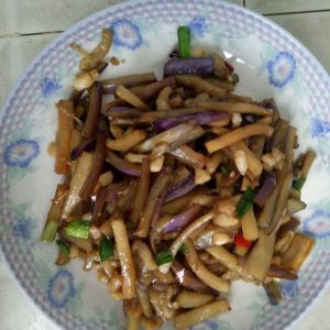 茄子很快变软,加耗油和葱花,再炒几下就可以出锅