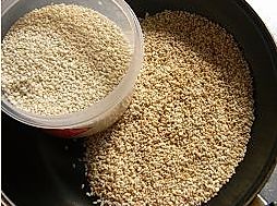 左面是生芝麻右面是炒熟芝麻。(小火炒)