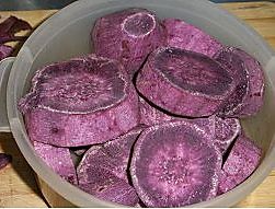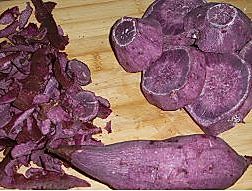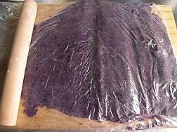 把紫薯放保鲜袋用擀面杖擀成泥,尽量擀均匀一些。