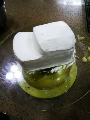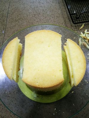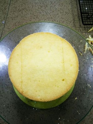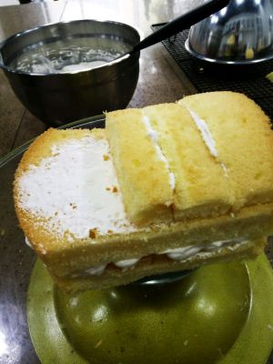 然后涂奶油!抹好就行不用太厚滴!因为等下表面还要挤奶油
