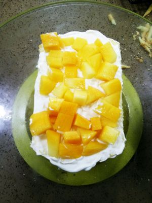 先抹一层淡奶油再放水果!因为汽车不高!所以不用夹两层夹心!