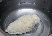 汤锅内注入适量的水,加入5ml料酒和2片姜,放入鸡脯肉煮至沸腾后保持小火约10分钟