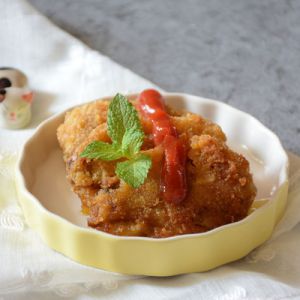烤的鸡翅装盘,挤上少量番茄酱就可以啦。