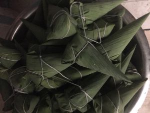 粽叶煮一下,煮滚,包的时候好包,粽叶不易烂