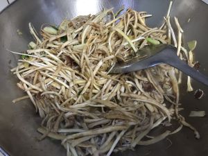 姜葱蒜爆香即可将茶树菇倒入,开始不停翻炒吧
