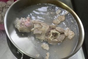 另起锅将猪大骨放入烧开去污水洗净