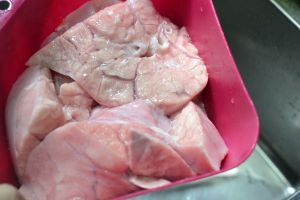 切大块(猪肺因为有水煮的时候会缩的比较厉害,所以不要切太小了)
